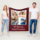 Personalized great grandma blanket with 4 photo template to add grandchildren pictures on a festive red buffalo plaid background.