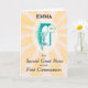 Herzlichen Glückwunsch zu Ihrer besonderen großen Nichte, wie sie ihre Erste Heilige Kommunion macht. Diese Karte feiert mit einem goldenen Sonnenbrand mit einem Kalice, Wirt und Weizen in der Mitte in aquamariner Farbe. Passen Sie mit ihrem Namen für einen wirklich persönlichen Sake an diesem heiligen Tag an.