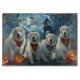Entfesseln Sie den unheimlichen Geist mit diesem unheimlichen Halloween-Design, das eine Hundepackung unter einem dunklen, mondbeleuchteten Himmel bietet, umgeben von fliegenden Fledermäusen und glühenden Kürbissen. Ideal für diejenigen, die mit ihren wütenden Freunden eine Touch voller Furcht Liebe haben!