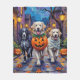 Adorable Große Pyrenäen, die in verspielten Halloweenkostümen gekleidet sind, tragen Kürbiseimer, während sie unter dem mondbeleuchteten Himmel tricksen oder behandeln. Dieses festliche Design hebt den flauschigen weißen Mantel der Rasse, ruhige Augen und sanfte Riesenpersönlichkeit hervor, was die sprichwörtliche und dennoch lustige Atmosphäre Halloween-Abends perfekt einfängt. Ein magisches Fest für Hundefreunde und Halloween-Fans gleichermaßen.