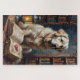 A detailed, majestic oil painting featuring a single massive white Great Pyrenees sitting in an ornate library, guarding a leather-bound book that displays ancient hand-drawn illuminated hearts. A noble and romantic Valentine's Day gift for Pyrenees owners.