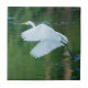 Ein schönes Great White Egret in Flug mit seinen Flügeln in der Abwärtslage über einem Fluss.