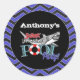 Great White Shark Zickzack Pool Party Stickers - mit einem blauen und chalkboard schwarzen Hintergrund. Verwenden Sie Aufkleber für Vorlieben, Dekorationen und vieles mehr für Ihre Geburtstagsfeier. Stickers haben ein Hai-Design mit verschiedenen nautischen Elementen.