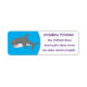 Ein glücklicher, hungriger großer weißer Hai schwimmt im Ozean. Gezeichnet im niedlichen Cartoon-Illustrationsstil auf blauem Hintergrund für einen lustigen Tag!