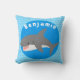 Ein glücklicher, hungriger großer weißer Hai schwimmt im Ozean. Gezeichnet im niedlichen Cartoon-Illustrationsstil auf blauem Hintergrund für einen lustigen Tag!