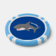 Ein glücklicher, hungriger großer weißer Hai schwimmt im Ozean. Gezeichnet in niedlichen Cartoon-Illustrationsstil für einen lustigen Tag!