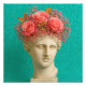Colorful Greek Ancient Woman Print. Pink Roses and Turquoise Glitter Background.
