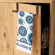A coastal blue and white Greek evil eye patterned kitchen towel perfect for beach house home decor this summer. Personalize the text template and make this a unique housewarming gift for your loved ones. Please contact me if you need any help with customization.