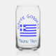 Personalized design shows the Flag of Greece and the words GREEK GODDESS above, in blue letters. Add a name underneath to personalize your can glass or create a customized gift. Fun for Greek-Americans, Greek Canadians, or anyone with Greek heritage, ancestry or culture. YIASSOU! The flag is blue and white stripes with a blue cross on a white background in the upper left area.