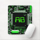 Modernes Design mit einem nahen aus einer Computerplatine in Grün, Schwarz und Weiß und den in Grün geschriebenen Initialen. Mousepad mit individualisierbarem Design für Sie, um mit Ihrem eigenen Text, Bildern und Ideen zu personalisieren. Erstellt mit einem Originalfoto und digitalen Techniken von Jess Perry.