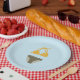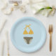 Ein zweiteiliger Badeanzug aus Grün und Gold auf einer Papiertüte. Ideal für Ihr Party am Pool.