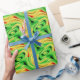 vibrant abstract design features flowing chrome waves in green, golden, and red, creatic a dynamic look.