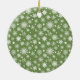 Send warm holiday wishes in style with this round Christmas ornament, featuring a green background adorned with white snowflakes and stars. The classic winter pattern brings a touch of festive charm — perfect for those who love a timeless holiday look with a modern twist.