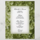 Das elegante Green Annabelle Hydrangea Floral Wedding Menu mit den Details des Essens, das Sie in Ihrem hübschen Garten Party Themenabend Brautparty Mittagessen, Ehe Empfang Abendessen oder Post Hochzeit Brunch, wenn Sie den Salat oder erste Gang, Vorspeise oder zweite Gang und Dessert oder dritten Gang. Personalisieren Sie es mit den Namen der Braut und des Bräutigams, dem Ort und dem Veranstaltungsdatum. Dieses elegante, individuell gestaltete Speisenangebot mit Brausekarte zeigt ein botanisches Foto einer grünen Blüte der Annabelle Hydrangea-Blume.