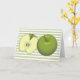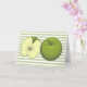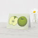 Dieses Design besteht aus zwei glänzenden grünen Äpfeln (einer halblänglich geschnitten) auf einem horizontal gestreiften Hintergrund.