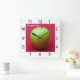 Green apple on red background quadratische wanduhr