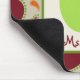 Ein Mousepad mit einer Abbildung eines grünen Apfels in einem weißen Quadrat mit grünem Trimm. Personalisieren Sie mit Ihrem Namen unter Apfel. Der Hintergrund ist ein Pisley. Suchen Sie im Pink Schoolhouse nach passenden Artikeln.