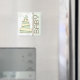 Ein Magnet, der eine Abbildung eines Babyduschkuchens mit einem grünen, braunen und cremefarbenen Muster zeigt und oben eine passende grüne Babywagen aufweist. Rechts ist grün mit braunem Schnitt. Der braune Text lautet "BABY". Hintergrund sind schiere grüne Polka-Punkte. Das Zimmer war sehr sauber und sauber. Suchen Sie nach passenden Einladungen und Porto in der Kategorie "Baby" von Jill's Paperie.