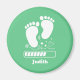 Dieser personalisierte grüne Magnet wurde unter Berücksichtigung der erwartenden Mütter und Pflegedienstleister entworfen. Egal, ob Sie eine Mutter sind, Kinderarzt, Geburtshelferin, Hausarzt, Hebamme oder Hausarzt, dieser personalisierte Magnet ist eine unterhaltsame Ergänzung zu Ihrem Zuhause oder Büro. Dieser Magnet mit einem Paar bezaubernder Babyfüße und einem Ladesignal darunter ist ein lustiges Geschenk für eine werdende Mutter und für diejenigen, die sich um schwangere Mütter und Väter kümmern und um Neugeborene arbeiten.