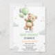 Green balloon bear baby shower invitation