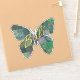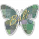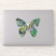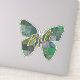 Maßgeschneiderter Vinyl-Aufkleber mit einem Patchwork-Batik-Schmetterling in verschiedenen Druckfarben und Farbtönen grün mit ein wenig lila. "Bali" wird in Goldschrift darüber gedruckt. Sehen Sie sich die gesamte Bali Retreat-Aufklebersammlung im INVITES an. | Aufkleber