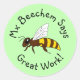 Eine stripey Cartoon Honigbiene auf grünem Hintergrund. Der Text lautet "Mx Beechem Says Great Work!" und kann für einen individuelle Name/eine Nachricht geändert werden. Ideal für Lehrer als Belohnung für Schüler.