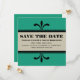 Elegantes und raffiniertes Extravagantes Art Déco Ankündigung Datum freihalten in smaragdgrün und tidal-schaum beige mit einem kunstvoll geblüht und gepunkteten Rahmen und einem zweifarbigen Farbschema. Dieses moderne Design eignet sich hervorragend für die Ankündigung einer Hochzeit mit Deko-Thema. Einfach zu anpassen, fügen Sie einfach Ihre Hochzeitsdetails in den Textfeldern zur Verfügung gestellt. Klicken Sie auf "Anpassen", um weitere Personalisierungsoptionen zu finden.
