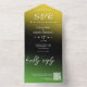 Grün, Schwarz und Gelb Gold in einer Einladung zur Hochzeit. Personalisieren Sie es mit Ihren Event-Details und Ihrem Hochzeitsregistercode QR.