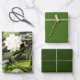 Ätherische abstrakte Kunst in Grün-, Schwarz- und Goldtönen. Ein Blatt abstrakter Kunst und zwei Blätter Vollfarbgrün in zwei verschiedenen Farbtönen. Einzigartiges Verpackungspapier des internationalen Künstlers Pauline Benjes. Grüne schwarze Umhüllungspapierblätter. Sehen Sie sich unsere Kollektion für elegantere Verpackungsideen an.