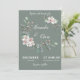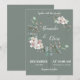 An elegant wedding invitation inspired by the beauty of nature, featuring a circular frame of soft flowers and serene green leaves that add a touch of sophistication and harmony. The refined olive background gives the invitation a classic yet modern feel, making it an ideal choice for both understated and luxurious weddings.