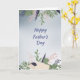 Auf der Vorderseite dieser Vatertagskarte befindet sich das untere Randbild einer blauen und grünen Ente, die unter Farnen versteckt ist. Die obere Grenze ist von grüneren, blauen und lila Farnen. Ihr benutzerdefinierter Text ist in der Mitte auf einem gradientenblauen Hintergrund. Sie können die im Inneren enthaltene Stimmung verwenden oder ganz einfach nach Ihren Wünschen anpassen.