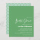 Bewundern Sie die Braut mit dieser bezaubernden Brautdusche, die eine frische grüne Front und einen geometrisch gemusterten Rücken bietet, der eine spielerische Touch verleiht. Diese Einladung ist perfekt für alle, die eine elegante und dennoch preisgünstige Veranstaltung planen. Sie verbindet Einfachheit und Stil mühelos. Ob als Gastgeber einer Ansammlung im Hinterhof oder als feierlicher Anlass, es ist eine ideale Wahl für moderne Gastgeber, die personalisierte Details mit einem Pop von Farbe Liebe.