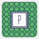 Zeitgenössische, grüne/blaue Quatrefolienmuster Monogramm Aufkleber.