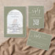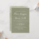 Dieses Design besticht durch ein botanisches boho tropisches Reiseziel, eine Aquarellpalme, ein Design der Blätter, ein Resort Strand Ozeaninsel, eine moderne, schlichte grüne Salbeifarbe, ein tropisches Blumengrün, ein elegantes lässiges, einfaches, modernes, schlichtes Einladungs-System, eine grüne Weissnatur botanisch, eine raffinierte tropische Romantik, eine zeitgenössische Kalligraphische Schrift