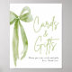 Watercolor Sage Green Bow Cards and Gifts Sign Verbessern Sie Ihr Brautparty oder besondere Veranstaltung mit unserem eleganten "Watercolor Sage Green Bow Cards and Gifts" Schild. Dieses Schild mit einem zarten Aquarellschlerbogen verleiht Ihrem Geschenktisch eine Touch Raffinesse. Es ist perfekt, um die Gäste beim verlass ihrer Karten und Geschenke zu begleiten, und fügt sich nahtlos in jedes Dekor ein. Das auf hochwertigem Karton gedruckte Schild ist sowohl haltbar als auch schön und macht es zu einer charmanten Ergänzung Ihrer Feier.