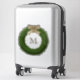 Dieser Aufkleber hat einen fröhlichen grünen Boxholzkranz, der mit einem Bogen verbunden ist, und Ihr Monogramm in der Mitte - ideal, um eine persönliche Touch an Türen, Schreibtischen, Lagerbehältern usw. zu setzen.