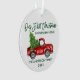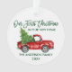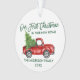 Modern Brush Script Unsere ersten Weihnachten in unserem New Zuhause Ornament beinhaltet Watercolor Vintag Red Truck mit Weihnachtsbaum - Forest Green Script