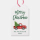 Pinselschrift Wasserfarbe Vintager roter LKW mit Weihnachtsbaumgeschenk-Tag - Grün