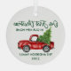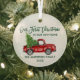 Modern Brush Script Unsere ersten Weihnachten in unserem neuen Zuhause Glass Ornament beinhaltet Watercolor Vintag Red Truck mit Christbaum - Forest Green Script