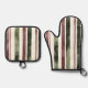 Green Burgundy Stripes Weihnachten Ofenhandschuh & Topflappen-Set