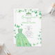 This pretty green floral quinceanera invitation has butterflies, a green glitter dress, a green tiara crown, and a custom photo on the back with a personalizable template to create your own invitation. The template is customizable in the listing editor and is also available as a digital download that's printable after you personalize it.