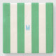 Die personalisierten Cabana Stripe Untersetzer für Ihre Sommergetränke... grüne Cabana Streifen mit blauen Monogramm. Personalisieren Sie mit Ihrem eigenen Initial. Matching Zubehör in unserer Minimal Monogram Cabana Stripe Kollektion erhältlich.