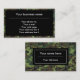 Elegante, stilvolle und raffinierte Visitenkarten mit Tarnmuster in grün und braun. Modernes Design, ideal für berufliche Soldaten, Militärangehörige und Aviatoren.