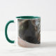 Jäger grün 11 oz Combo Tasse mit grünen Augen Katze, die Sie anschaut.