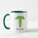 Doppelschlangen-Kadukeus. Durch keltisches Knoten-Design inspiriertes Bild. Benutzerdefinierter Text auf beiden Seiten.