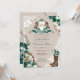 Elegantes rustikales Design mit Charro/Cowboy/Ranch Thema. Mit einem schönen Wappen, luxuriösen smaragdgrünen und weißen Blumen und hübschen Cowgirl/Cowboy Stiefel