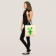 Maßgeschneiderte Cheerleader's Leinwand Tote Tasche, mit Grafik einer grünen Silhouette eines springenden Cheerleader. Fett grüner Text über die Silhouette ist anpassbar, um zu lesen, was immer Sie gewollt haben. Ideal, um all Ihre fröhlichen Notwendigkeiten zu halten.