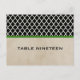 Elegante und moderne Chic Quatrefolie Wedding Tischnummer Postcard mit einem trendigen marokkanischen Muster Hintergrund, einem Vintagen Papierhintergrund und einem Paar dünner grüner Streifen. Diese stilvolle Tischkarte ist einfach zu anpassen, fügen Sie einfach die passende Tischnummer(en) hinzu. Klicken Sie auf "Anpassen", um weitere Personalisierungsoptionen zu erhalten.