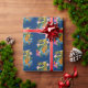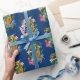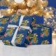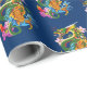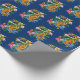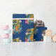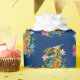 Ein grüner chinesischer Drache mit einem orangefarbenen Koi-Fisch mit Lotus-Blume und Kirschblüten vor dunkelblauer Kulisse.