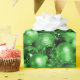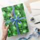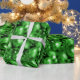 Ein glänzendes, glitzerndes Weihnachtspapier mit einem festlichen Muster von grünen Weihnachtsbaumdekorationen und Bausteinen, um Ihrem Weihnachtsgeschenk in dieser Weihnachtszeit ein wenig Glanz und Glamour zu verleihen.